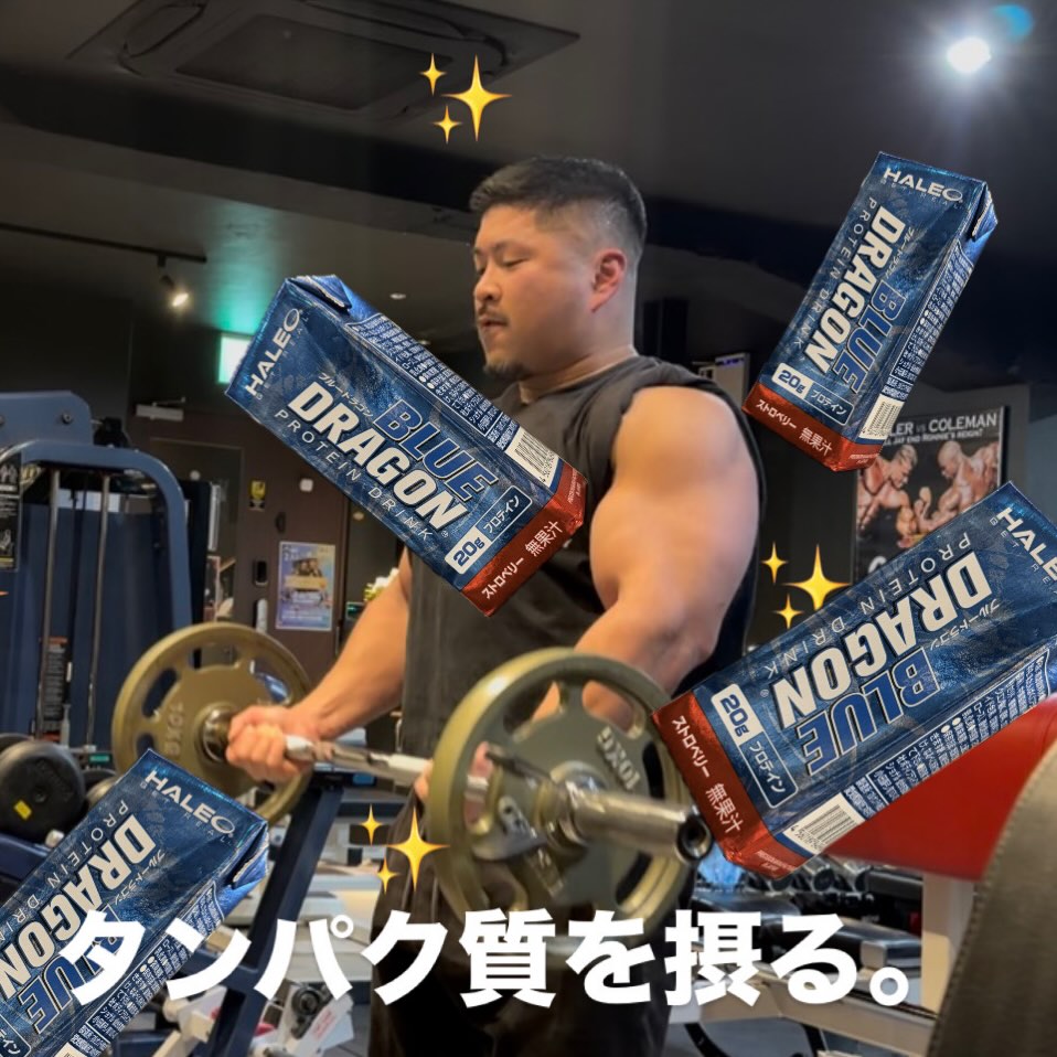 • まずはトレーニング前2〜3時間のどこかで20〜40gのタンパク質!←消化に時間がかかるので直前よりも間隔が空いてるほうが⭕️